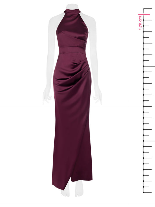 Abito Lungo Scivolato in Raso Arricciato su un Fianco