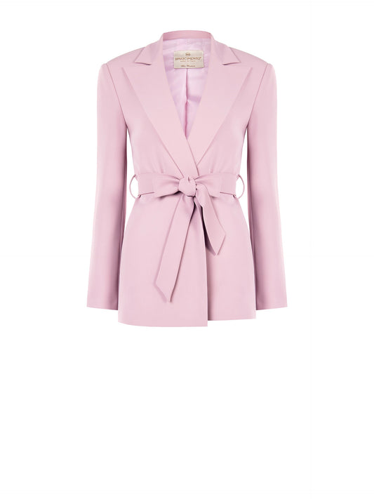 Giacca Blazer Aperta in Tessuto Fluido Crepe con Cintura Coordinata