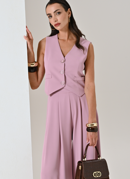Pantaloni Palazzo in Tessuto Fluido Crepe con Doppia Pinces