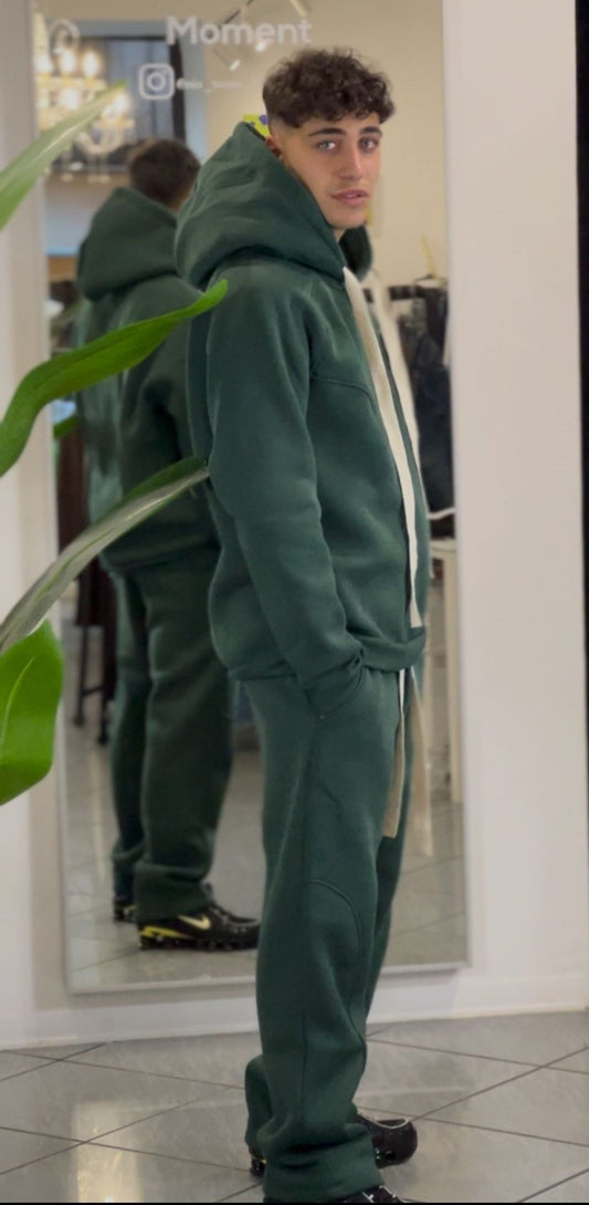 TUTA SCUBA FELPA CON CAPPUCCIO E PANTALONE FONDO AMPIO E CUCITURE